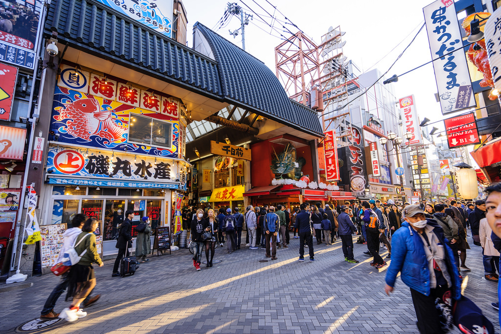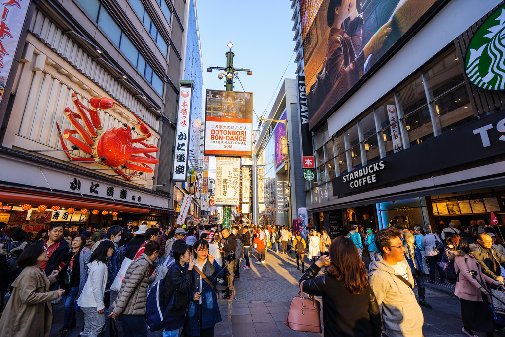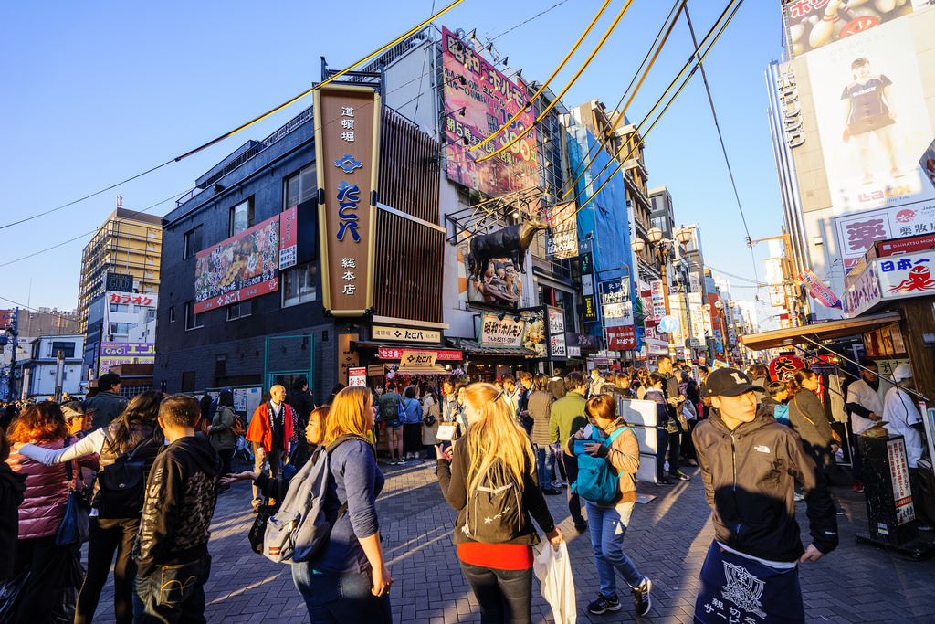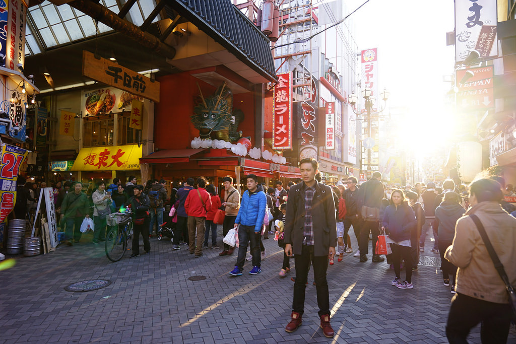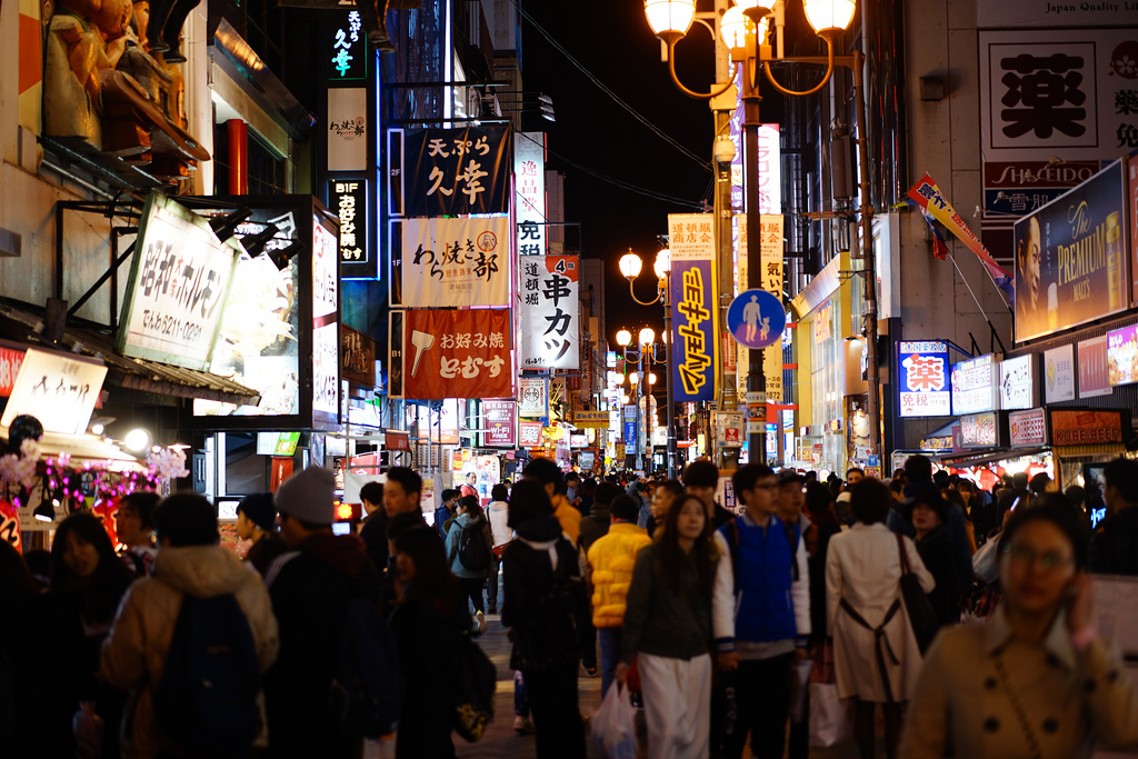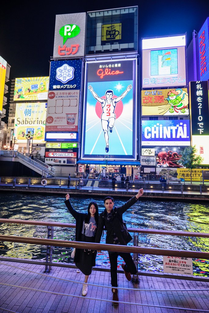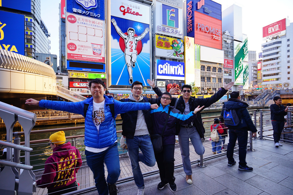肚子餓了大夥前往吃大阪燒吃完再回來逛街夜晚的道頓堀依舊吸引人